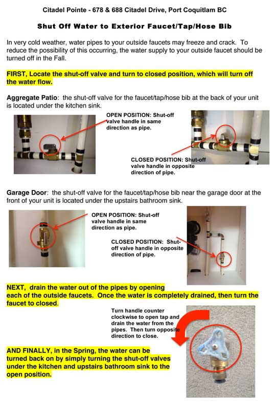 Shut off Instructions for Exterior Hose Bib